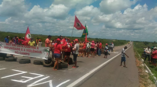 O movimento social também seria responsável pelo outro bloqueio, realizado no quilômetro 105 da BR-406 em João Câmara, no Agreste. No protesto, os manifestantes queimaram pneus e empunharam bandeiras do movimento.